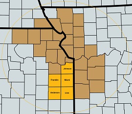 Kansas: Johnson, Franklin, Miami, Anderson, and Linn Counties