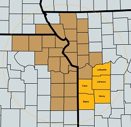 Missouri: Cass, Lafayette, Johnson, Bates, and Henry Counties